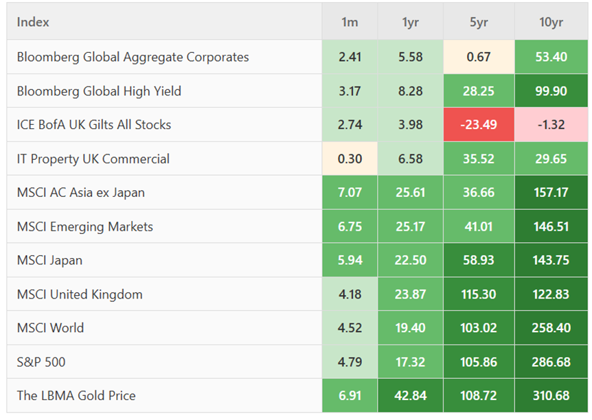 The Monthly Market Commentary (MMC) is written and researched by Scott Bradshaw, Lauren Hyslop and Jonathon Marchant for clients and professional connections of Mattioli Woods and is for information purposes only. It is not intended to be an invitation to buy, or to act upon the comments made, and all investment decisions should be taken with advice, given appropriate knowledge of the investorʼs circumstances. The value of investments and the income from them can fall as well as rise and investors may not get back the full amount invested. Past performance is not a guide to the future.